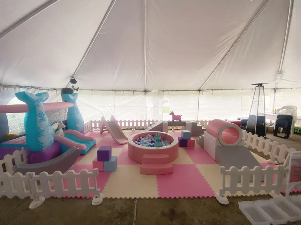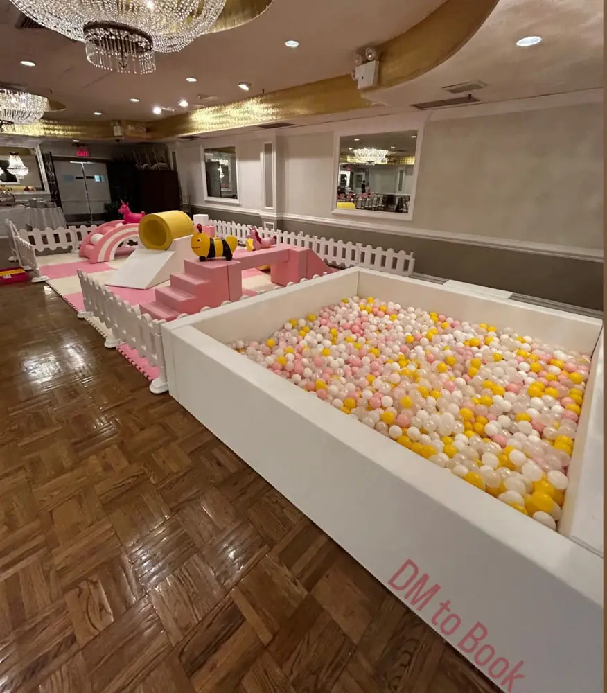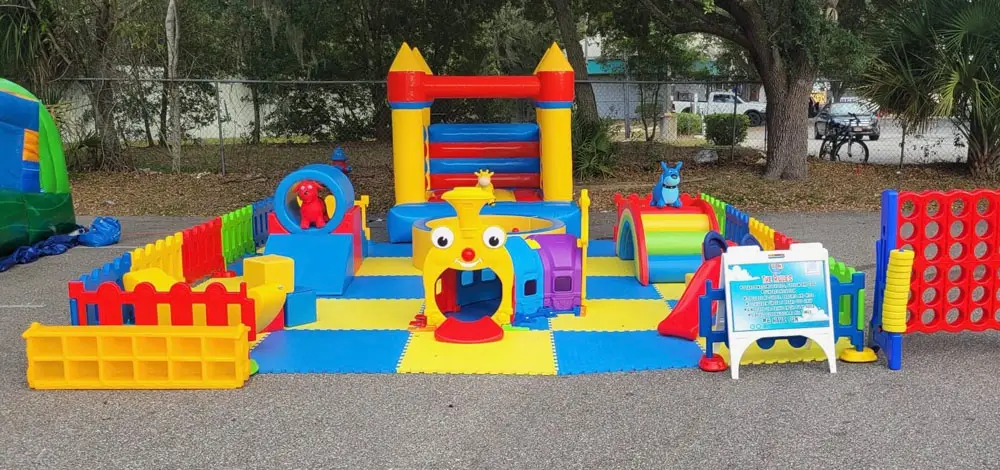 Our large package will keep the little ones playing and playing. This station contains 3 climbers not including the building blocks, jumping hoppers and ball pit. This station entertains up to 15 children, keeping their minds stimulated with the different sensory objects and their bodies moving. Rentals are 4 hours and $50 for each additional hour. Set up and break down is included in the price. Ball pit personalizing starts at $100 for party’s theme or child’s name. Theme colored equipment is $30. Delivery fee may apply, send zip code for a quote. Dates WILL NOT be held unless we receive a signed contract and a deposit of $150 of the package of your choice.