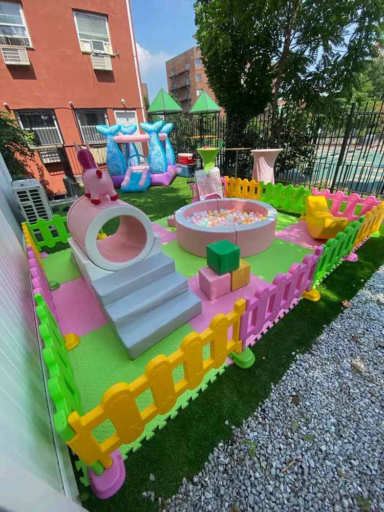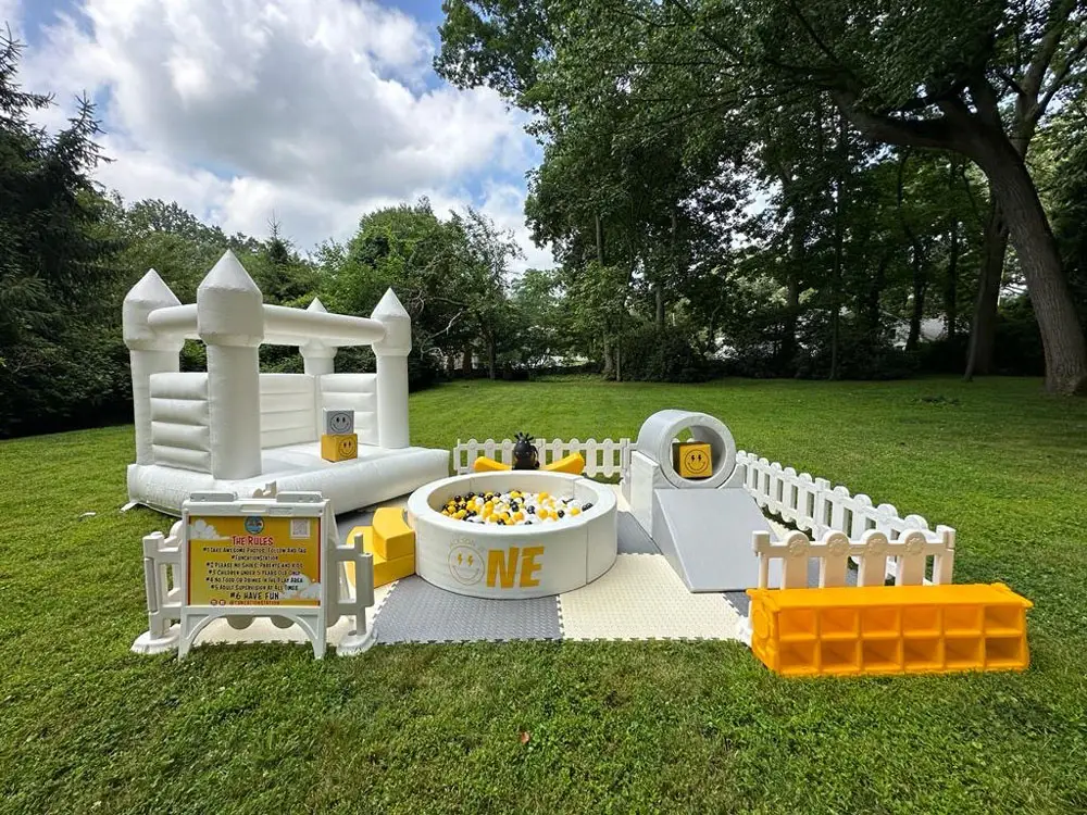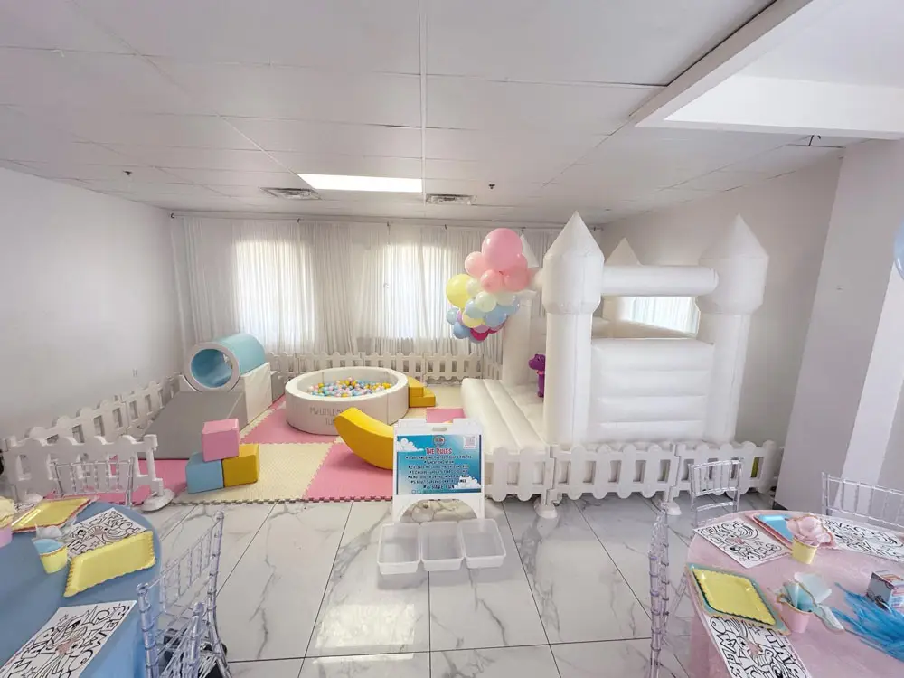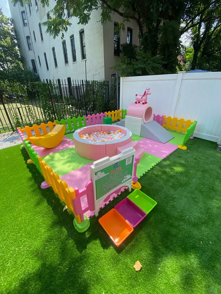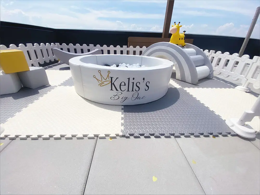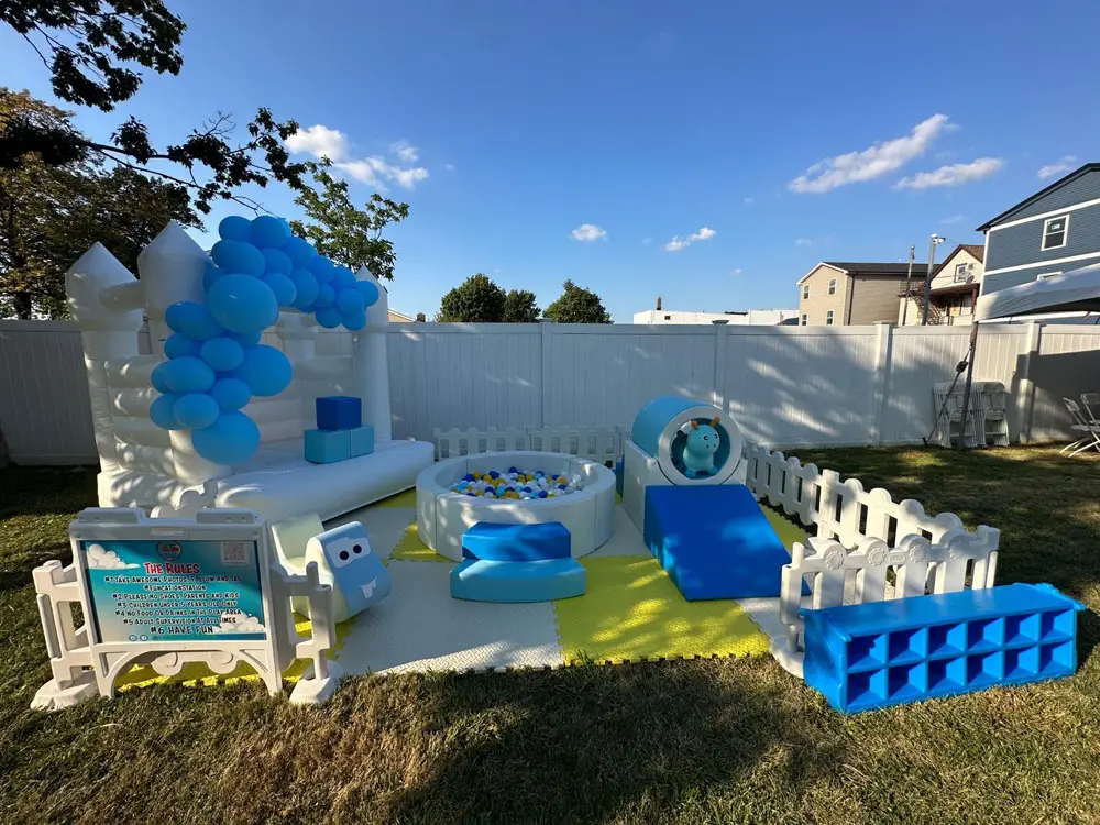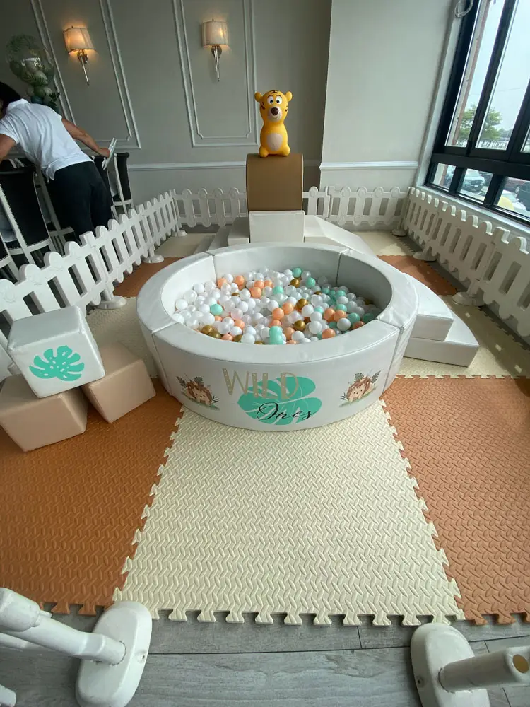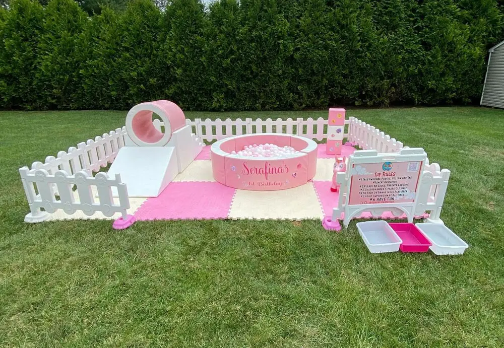 Our small station is perfect for small, intimate celebrations with family and friends and play dates. Whether it’s in a venue, backyard, or living room, our small station provides a clean, safe environment for your little ones to roam freely. Rentals are 4 hours and $50 for each additional hour. Set up and breakdown are included in the price. Ball pit personalizing starts at $100 for the party’s theme or child’s name. Theme colored equipment is $30. Delivery fee may apply, send zip code for a quote. Dates WILL NOT be held unless we receive a signed contract and a deposit of $150 of the package of your choice.